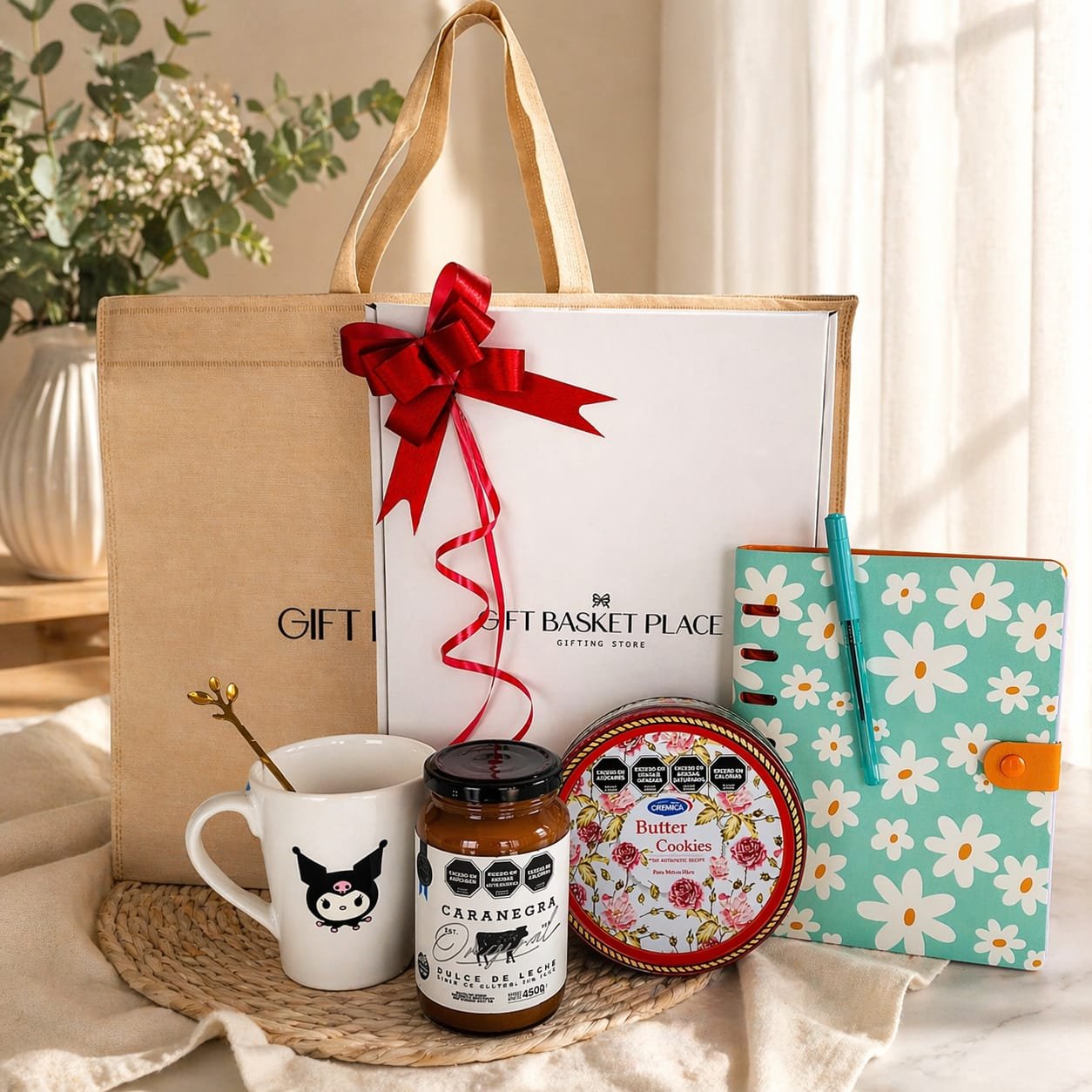Este GiftSmart combina dulzura, detalle y un toque personal con una taza ilustrada Kuromi & MyMelody, dulce de leche artesanal Cara Negra 450 gr, lata de galletitas buttercream y un cuaderno inteligente con lapicera para acompañar cada día.