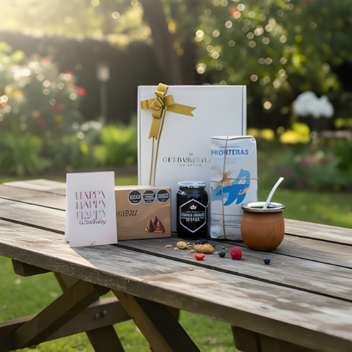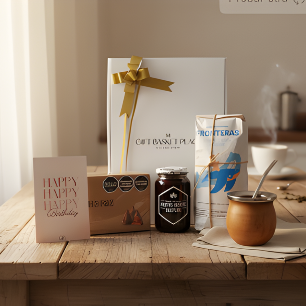 Este box incluye yerba mate saborizada, mate con bombilla, mermelada artesanal y chocolates, junto con tarjeta con dedicatoria personalizada para sumar un mensaje especial.